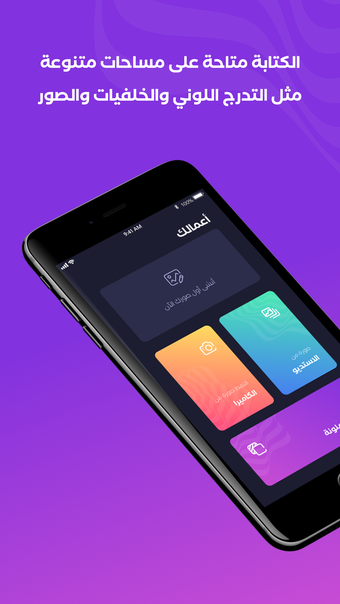 الكتابة على الصور (الكاتبة على الصور باحترافية) is a multimedia app available for iPhone. It provides users with a comprehensive workspace equipped with modern tools to add text to their photos. The app offers various options for text placement, including gradients, backgrounds, and images from the camera.
